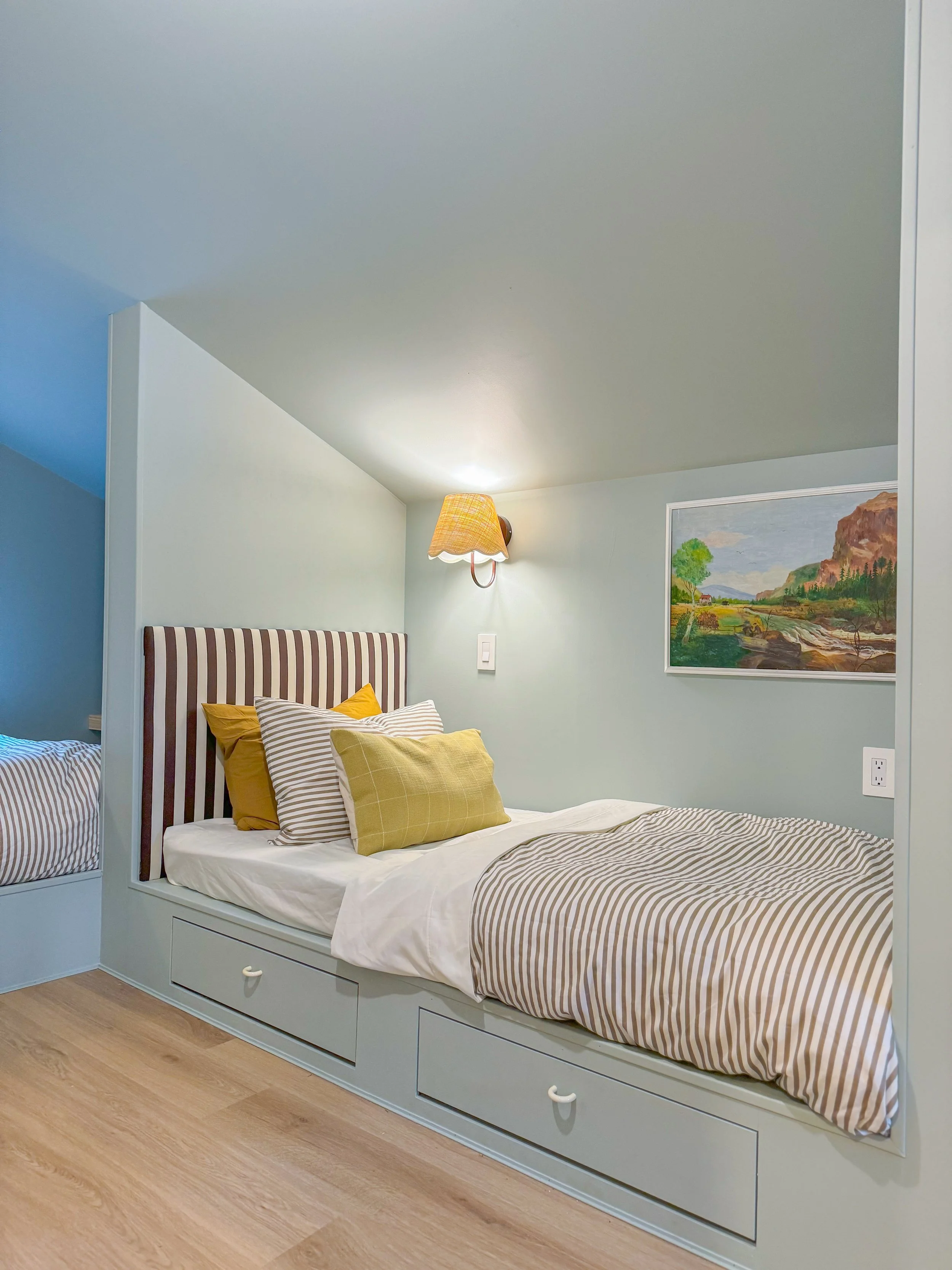 Bedroom Four, located upstairs, features 3 built-in beds: one double bed (with a brand new Bloom mattress) and two twins. This fun room is perfect for all the kiddos or family slumber parties! Tucked in to the niche of the double bed is a wifi tv and a game system for cozy movie nights.