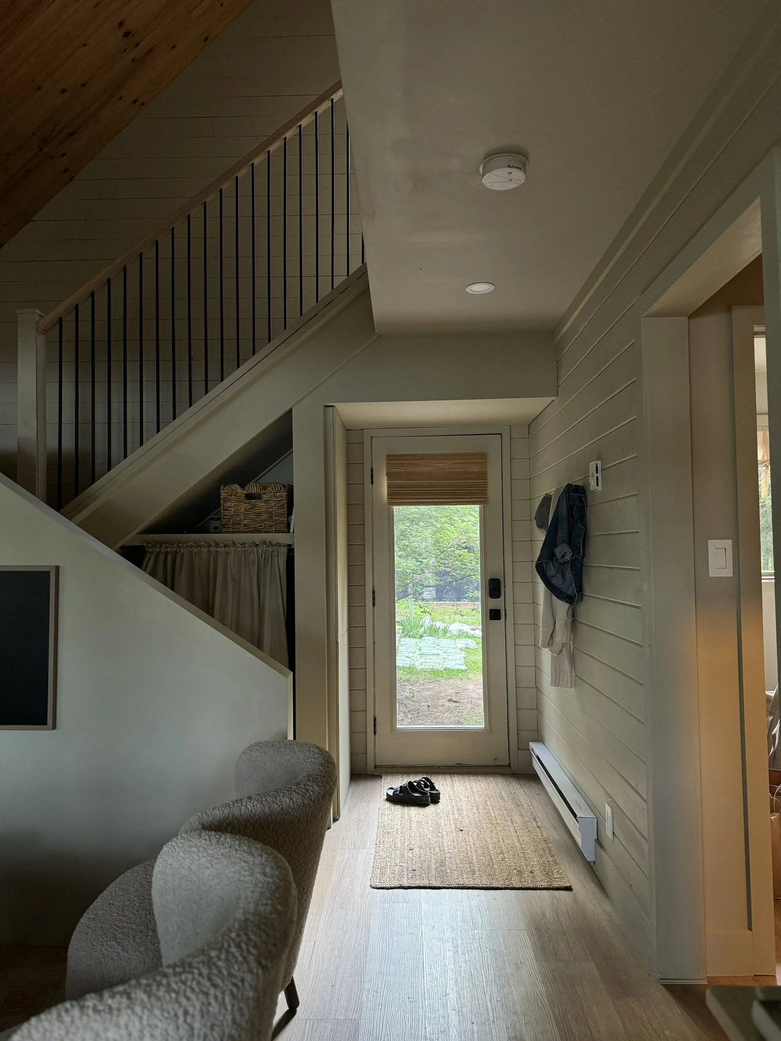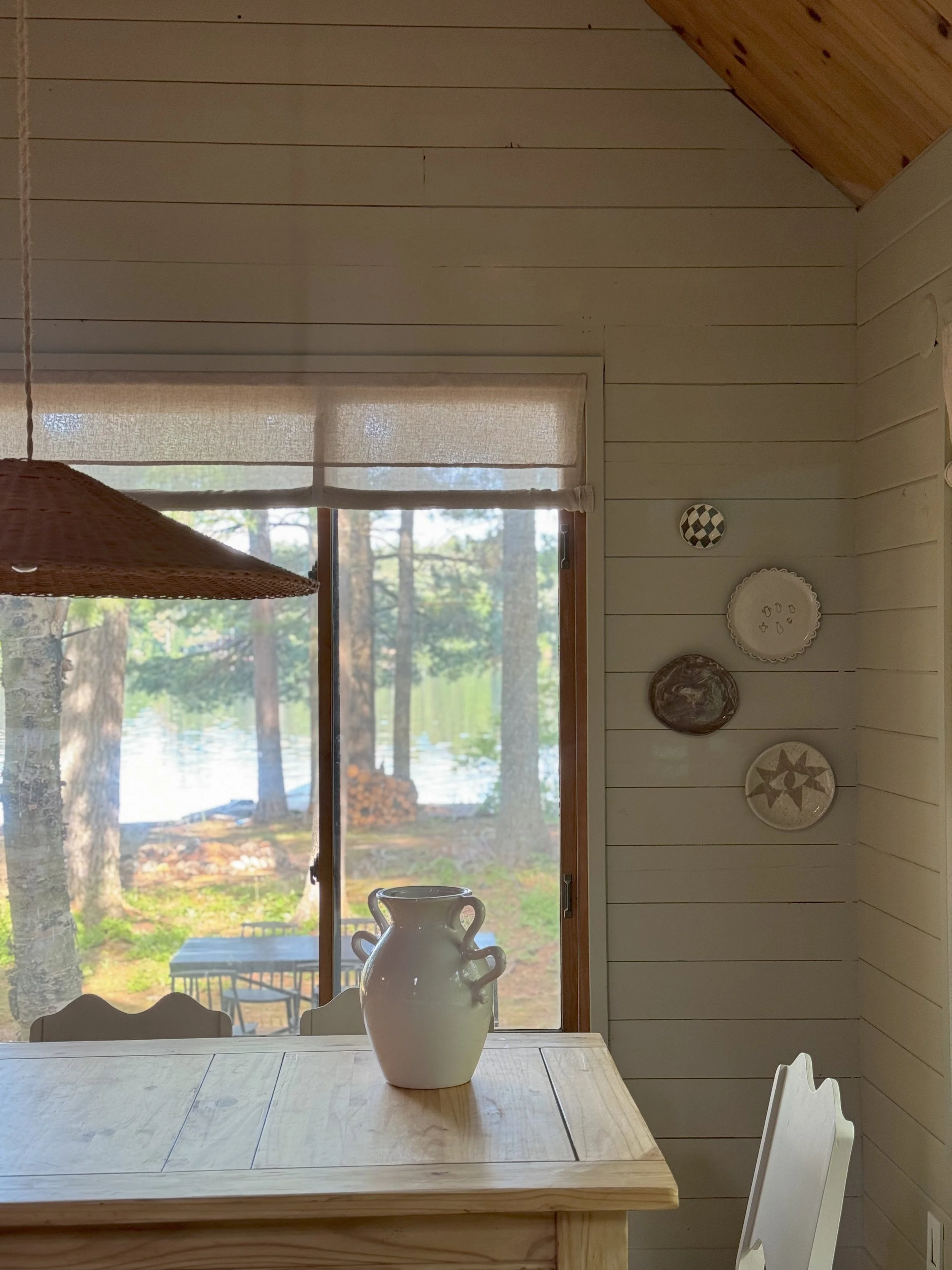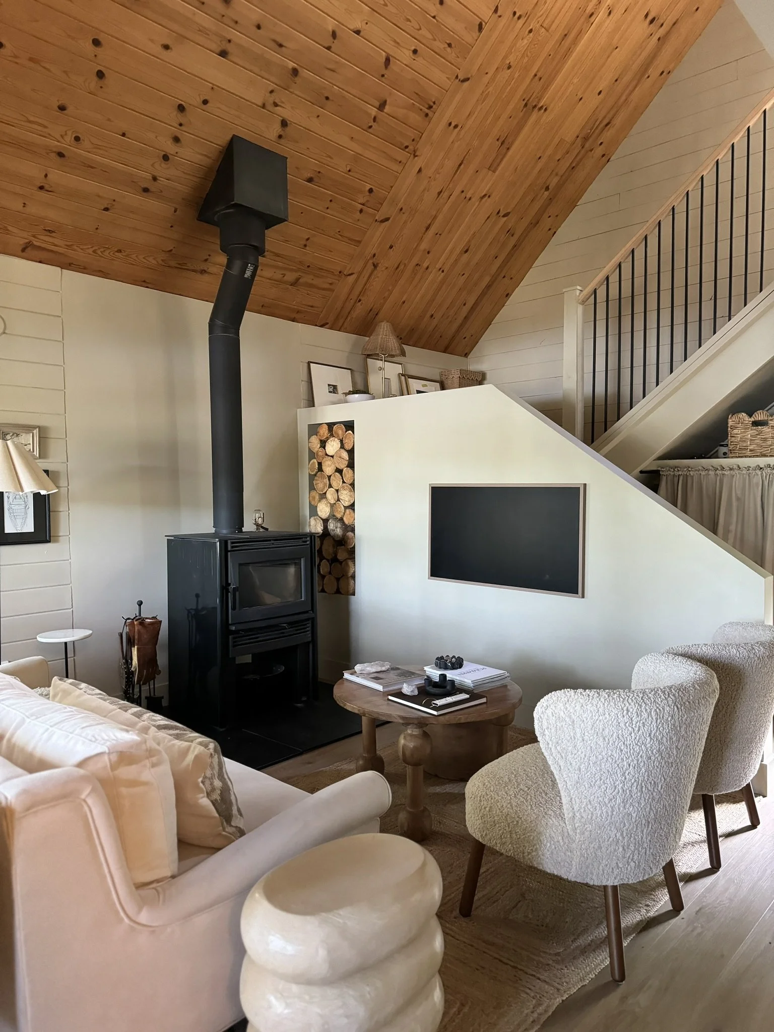 Living & Dining AreaA cozy open concept space with a dining table that overlooks the lake. Cuddle up on the couch in front of the brand new woodstove fireplace.